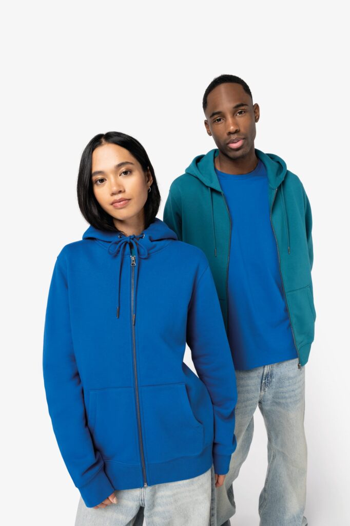 Sudadera con cremallera y capucha eco unisex, elaborada con materiales sostenibles, ideal para…